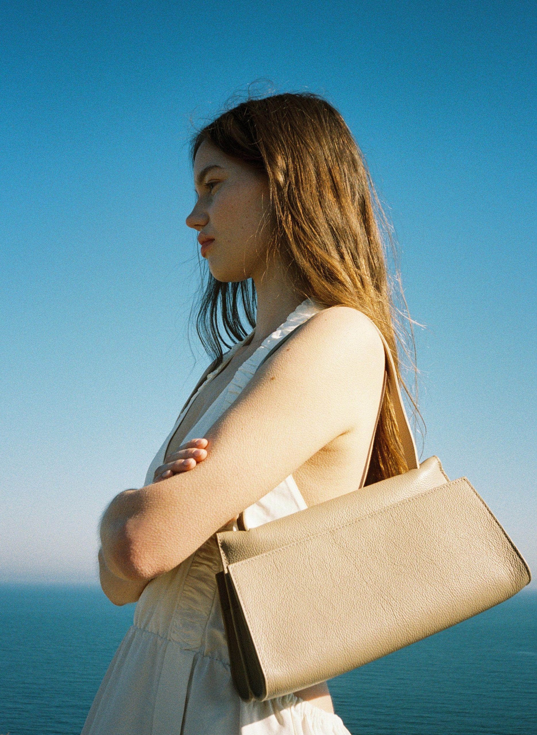 Expanded from our smaller-sized Papillon to it’s larger and longer version. Featuring a fold detail that is crafted from one piece of leather from front to back.